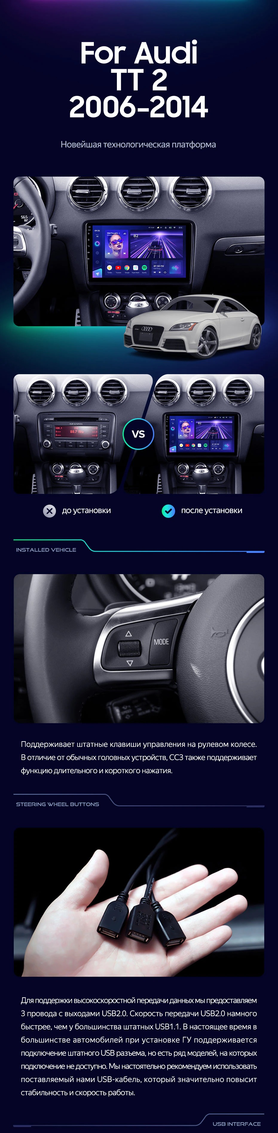 Штатная магнитола Teyes CC3 2K 360 6/128 Audi TT 2 (2006-2014) (13") - купить всего за 52 200 руб. в интернет-магазине в Саранске Teyes.com.ru. ✓ Самый лучший выбор мультимедиа ✓ Лучшая замена штатному ГУ ✓ Тел. +7 (800) 775-31-74