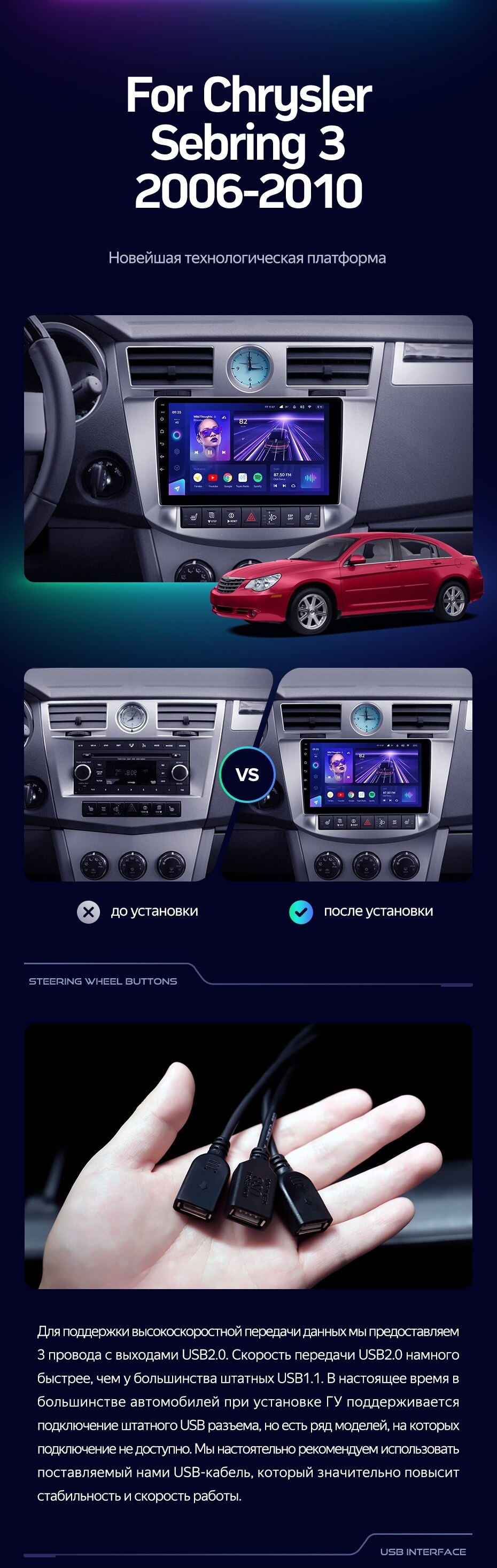 Штатная магнитола Teyes CC3 2K 360 6/128 Chrysler Sebring 3 JS (2006-2010) (13") - купить всего за 53 900 руб. в интернет-магазине в Саранске Teyes.com.ru. ✓ Самый лучший выбор мультимедиа ✓ Лучшая замена штатному ГУ ✓ Тел. +7 (800) 775-31-74