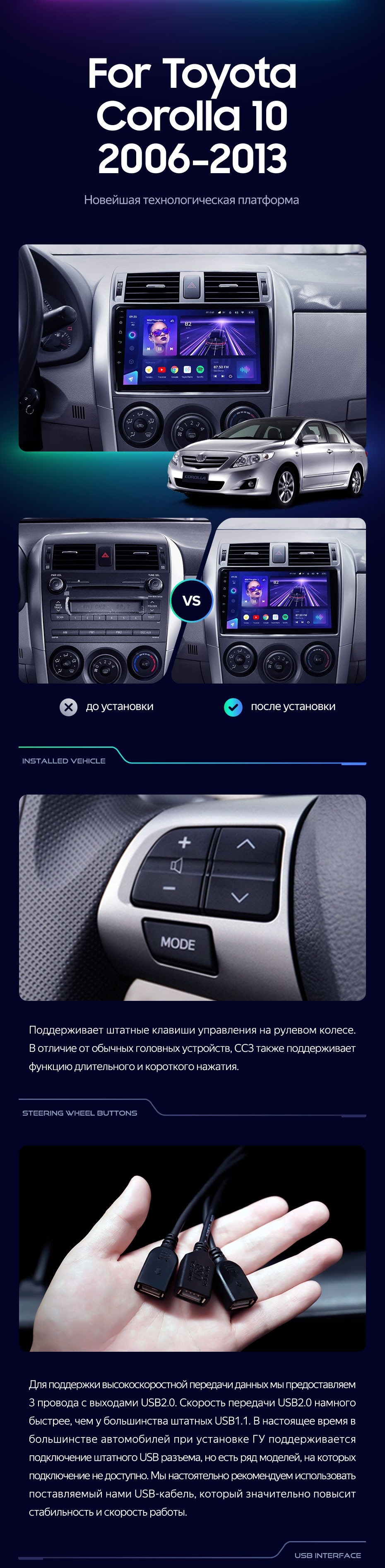 Штатная магнитола Teyes CC3 2K 360 6/128 Toyota Corolla 10 E140 E150 (2006-2013) Тип-B (13") - купить всего за 50 300 руб. в интернет-магазине в Саранске Teyes.com.ru. ✓ Самый лучший выбор мультимедиа ✓ Лучшая замена штатному ГУ ✓ Тел. +7 (800) 775-31-74