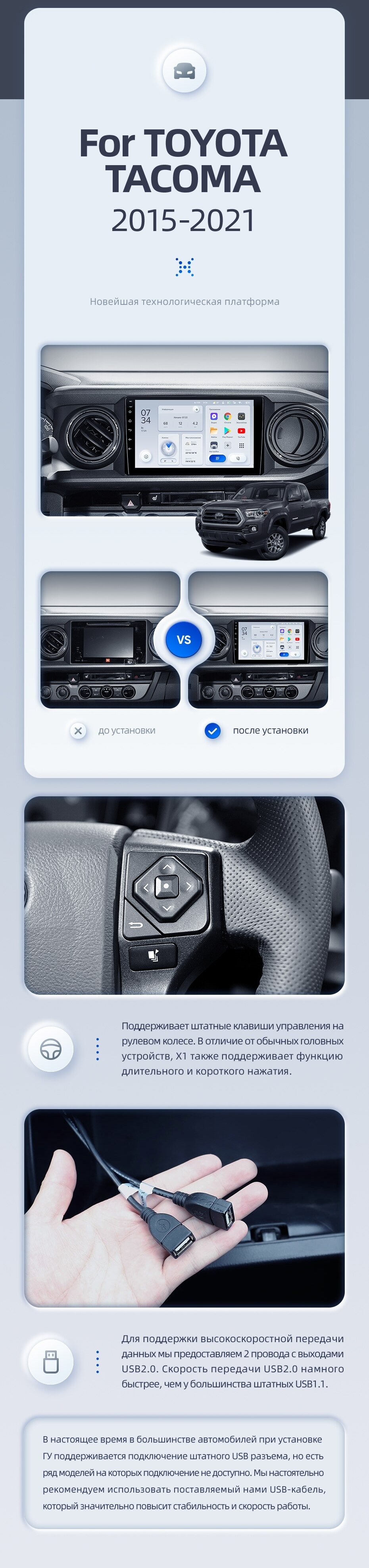 | Дополнительные аксессуары | USB-видеорегистратор, TPMS, передние парктроники, диагностический адаптер OBD | USB-видеорегистратор, TPMS, передние парктроники, диагностический адаптер OBD | USB-видеорегистратор, TPMS |
