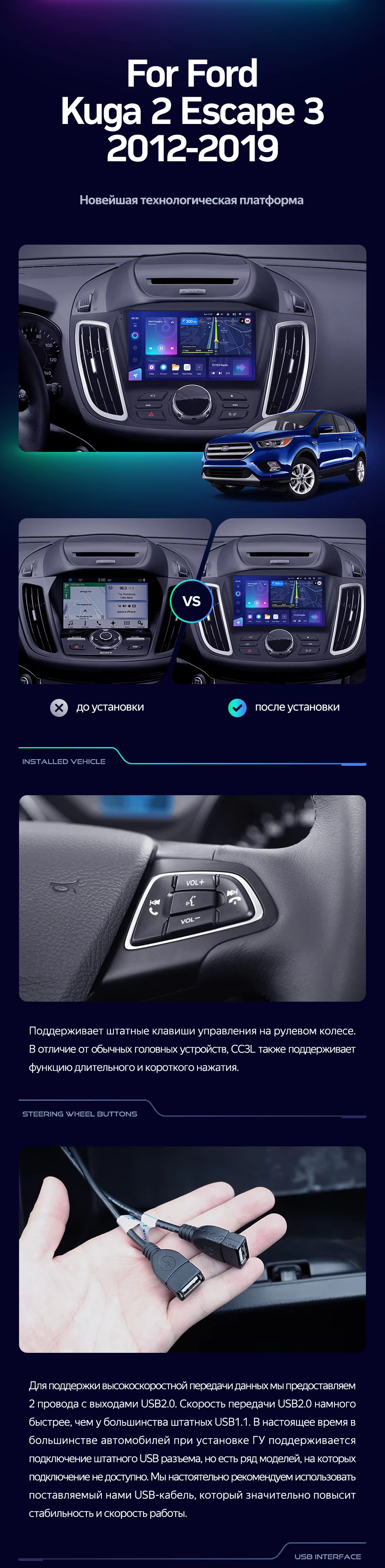 Штатная магнитола Teyes CC3L 4/32 Ford Kuga 2 (2012-2019) Тип-B - купить всего за 32 000 руб. в интернет-магазине в Саранске Teyes.com.ru. ✓ Самый лучший выбор мультимедиа ✓ Лучшая замена штатному ГУ ✓ Тел. +7 (800) 775-31-74