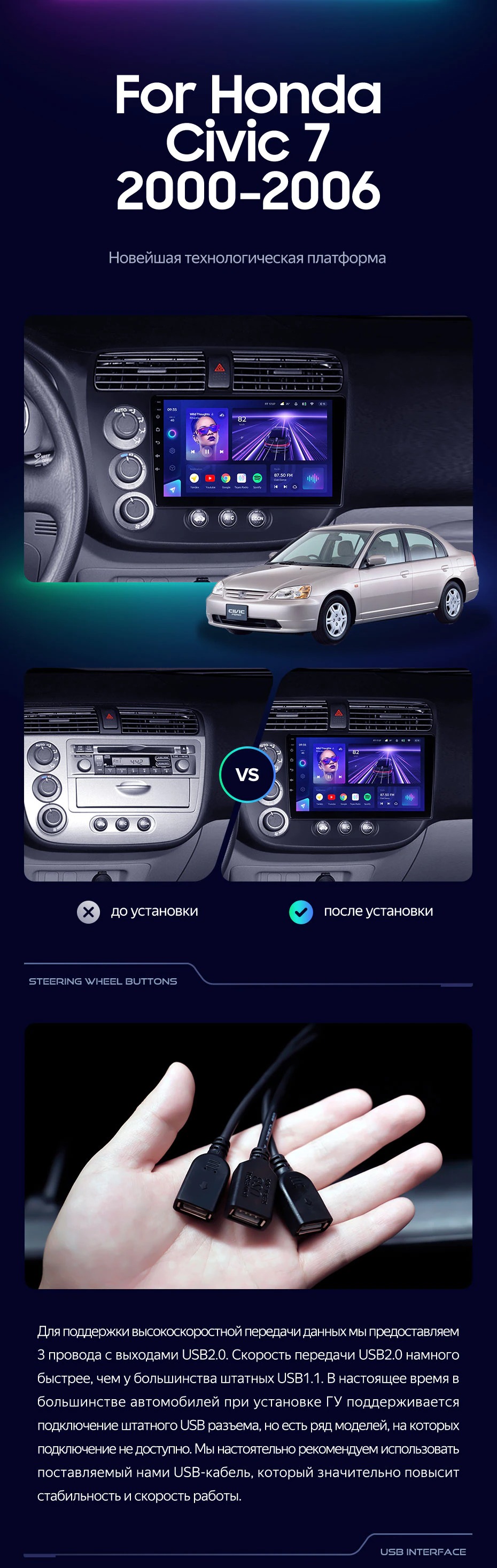 Штатная магнитола Teyes CC3L 4/32 Honda Civic 7 (2000-2006) F1 - купить всего за 28 500 руб. в интернет-магазине в Саранске Teyes.com.ru. ✓ Самый лучший выбор мультимедиа ✓ Лучшая замена штатному ГУ ✓ Тел. +7 (800) 775-31-74