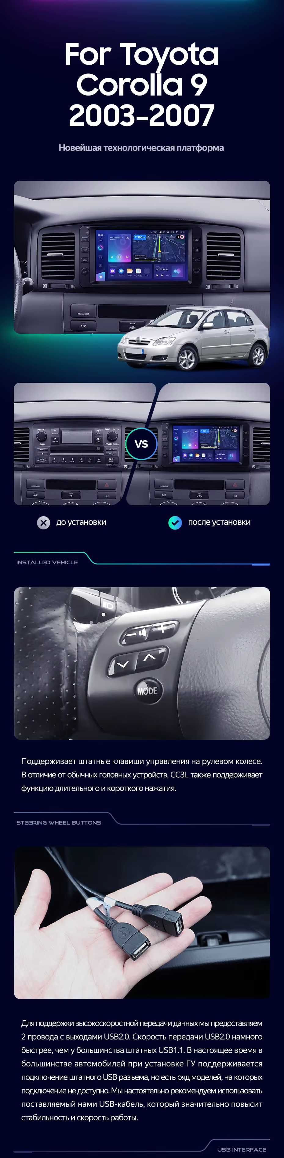 Штатная магнитола Teyes CC3L 4/32 Toyota Corolla 9 E120 E130 (2003-2007) 7" - купить всего за 28 300 руб. в интернет-магазине в Саранске Teyes.com.ru. ✓ Самый лучший выбор мультимедиа ✓ Лучшая замена штатному ГУ ✓ Тел. +7 (800) 775-31-74