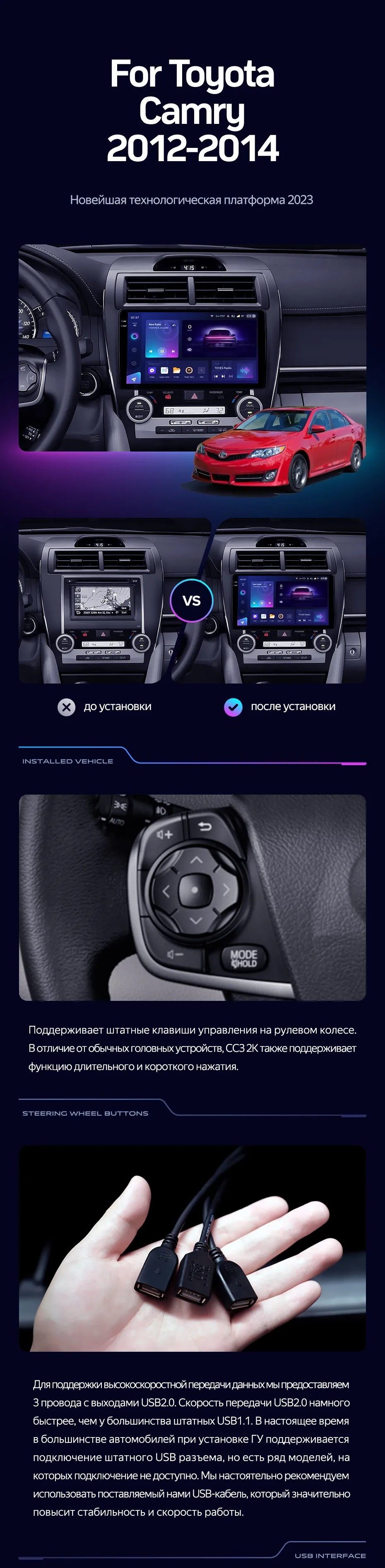 Штатная магнитола Teyes CC3L WiFi 2/32 Toyota Camry 7 XV 50 55 (2012-2014) Америка - купить всего за 17 100 руб. в интернет-магазине в Саранске Teyes.com.ru. ✓ Самый лучший выбор мультимедиа ✓ Лучшая замена штатному ГУ ✓ Тел. +7 (800) 775-31-74