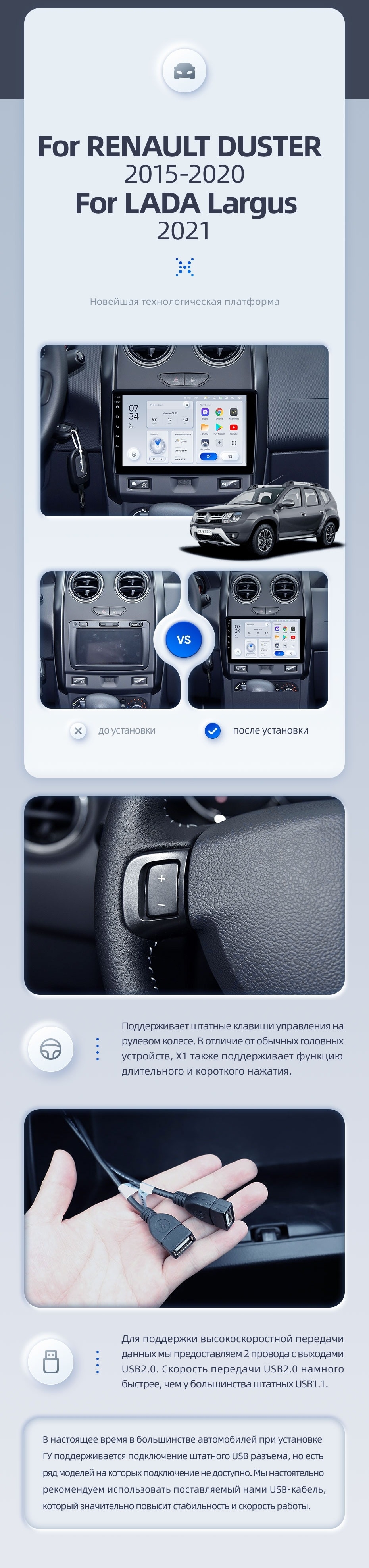 - Мультимедийные возможности: Поддерживает функцию разделения экрана для одновременной работы двух приложений. Имеется встроенный гироскоп и возможность подключения до 6 аналоговых камер.