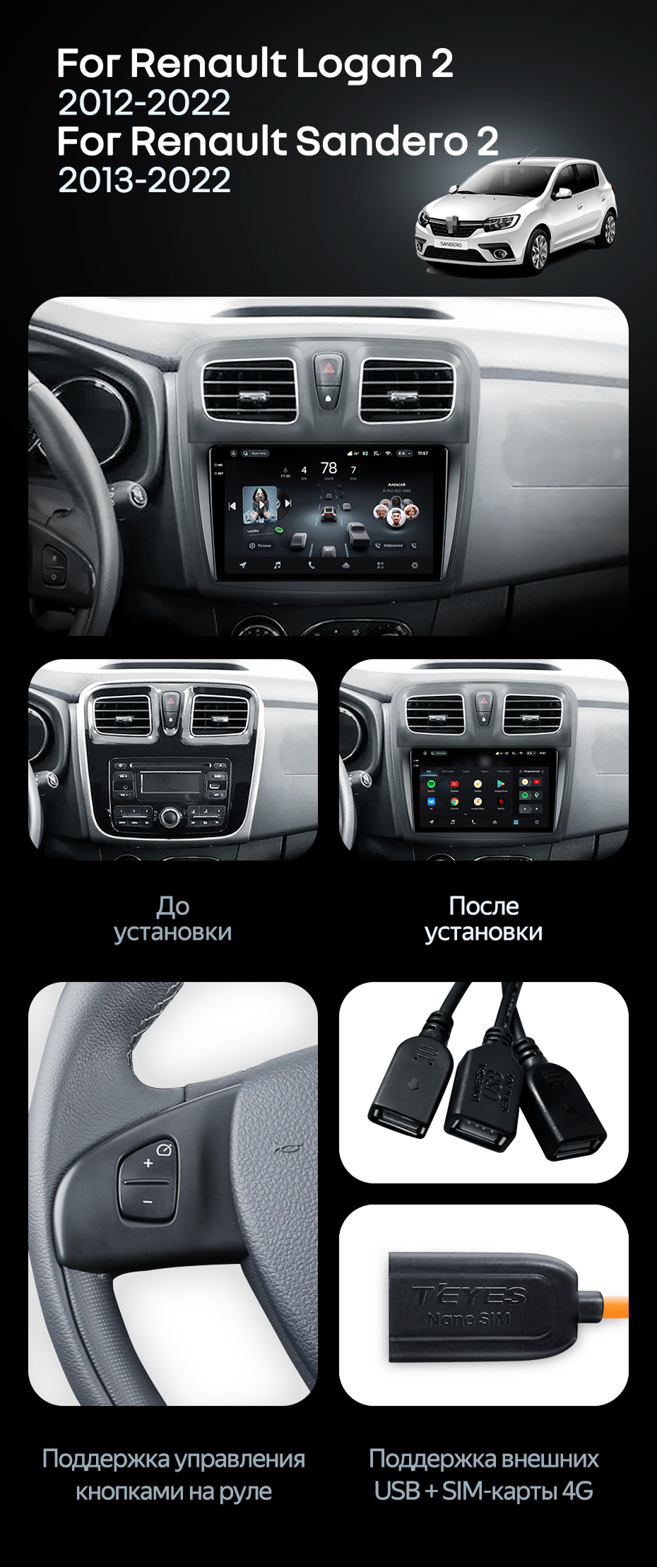 Штатная магнитола Teyes CC4 6/64 Renault Logan 2 (2012-2022) F2 - купить всего за 43 500 руб. в интернет-магазине в Саранске Teyes.com.ru. ✓ Самый лучший выбор мультимедиа ✓ Лучшая замена штатному ГУ ✓ Тел. +7 (800) 775-31-74