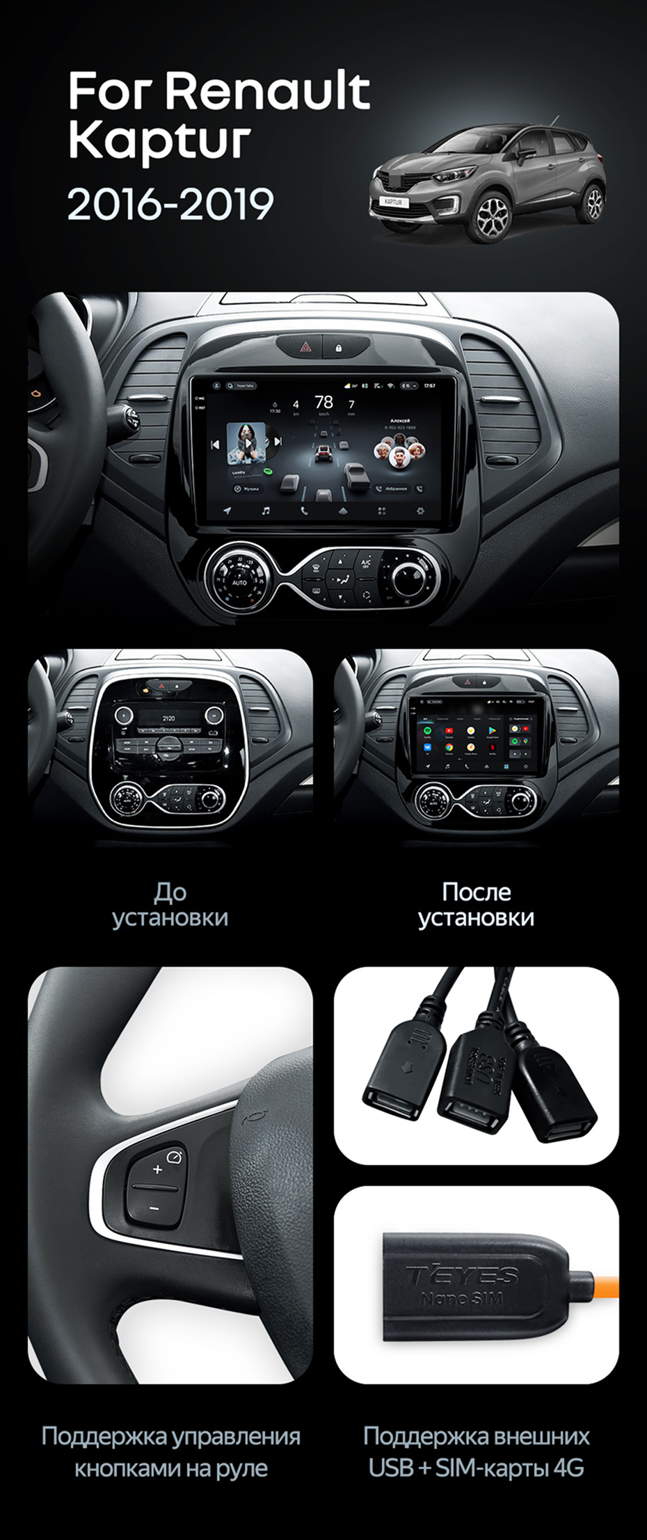 Штатная магнитола Teyes CC4 8/128 Renault Kaptur (2016-2019) F2 - купить всего за 48 620 руб. в интернет-магазине в Саранске Teyes.com.ru. ✓ Самый лучший выбор мультимедиа ✓ Лучшая замена штатному ГУ ✓ Тел. +7 (800) 775-31-74