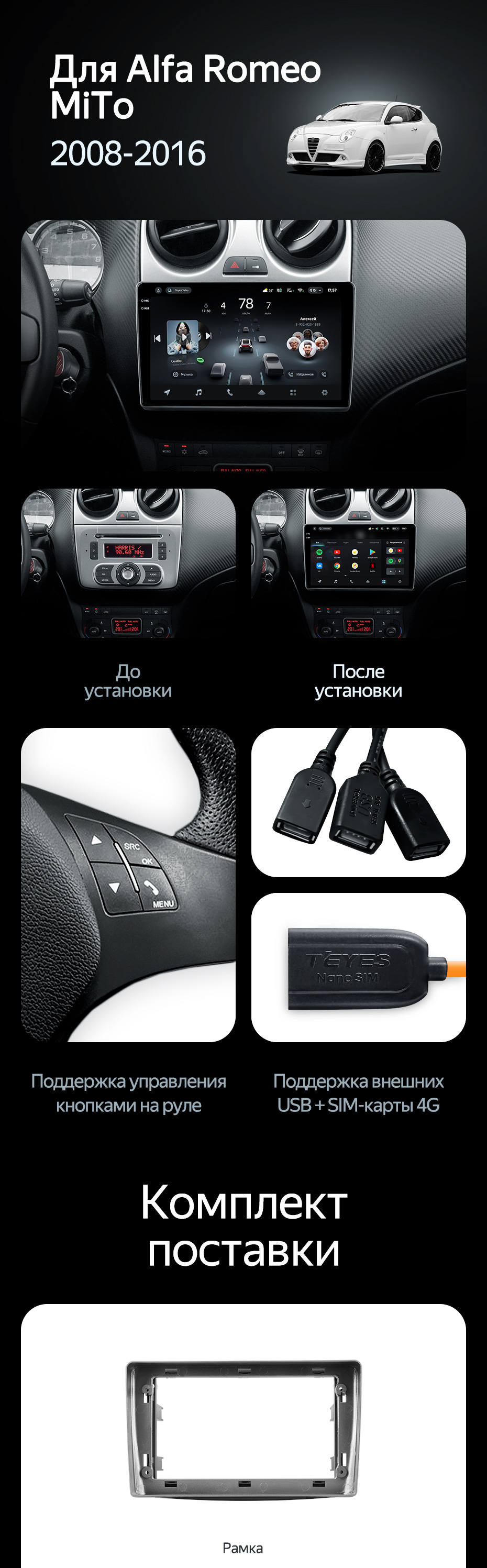 Штатная магнитола Teyes CC4 Pro 12/256 Alfa Romeo MiTo 955 (2008-2016) - купить всего за 71 300 руб. в интернет-магазине в Саранске Teyes.com.ru. ✓ Самый лучший выбор мультимедиа ✓ Лучшая замена штатному ГУ ✓ Тел. +7 (800) 775-31-74