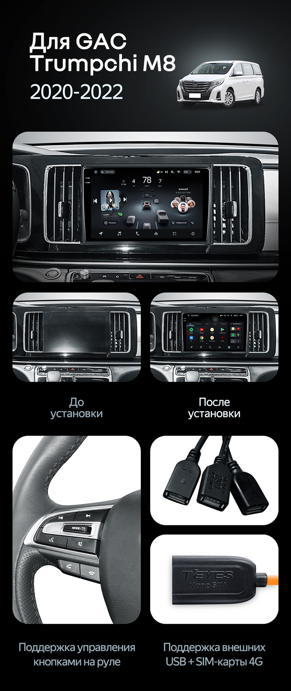 Переходная рамка GAC Trumpchi M8 (2020-2022) (10") - купить всего за 5 400 руб. в интернет-магазине в Саранске Teyes.com.ru. ✓ Самый лучший выбор мультимедиа ✓ Лучшая замена штатному ГУ ✓ Тел. +7 (800) 775-31-74